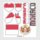 Amazing Monaco Shapes National Symbols Sticker. Two country name stickers, one in the colours of the national flag and the other one covered in the Word Cloud with the words "Monaco" written in the different alphabet forms and/or languages and fonts. All words are coloured with the national colours used on the flag of Monaco, Beautiful heart, shield (escutcheon) and map filled with the representation of the Monaco national flag. Hand sticker with the two fingers up, representing victory filled with the colours of the Monaco national flag. The last two stickers are national flag of the Monaco and the national Coat of Arms. This is the great set of superb stickers with most of them unique and hand drawn. All stickers are fully customisable using "Customise it!" feature. You can mix and match them as you wish. If you want multiple hearts but no shield fire away. Maybe you want only hand with the victory sign? Easy, remove everything else and make multiple copies of the hand. These grand stickers are the perfect sticky gift for any occasion. Fire away and stick them where your heart desire! © 2022 CountriesOfTheWorld