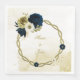 Amazing navy blue ivory gold floral wreath napkin