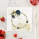 Beautiful navy blue ivory white and gold flowers with gold leaves botanical floral wreath wedding paper dinner napkin.