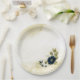 Beautiful navy blue ivory white and gold flowers with gold leaves botanical wedding paper paper plates.