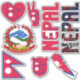 Amazing Nepal Shapes National Symbols Sticker. Two country name stickers, one in the colours of the national flag and the other one covered in the Word Cloud with the words "Nepal" written in the different alphabet forms and/or languages and fonts. All words are coloured with the national colours used on the flag of Nepal, Beautiful heart, shield (escutcheon) and map filled with the representation of the Nepal national flag. Hand sticker with the two fingers up, representing victory filled with the colours of the Nepal national flag. The last two stickers are national flag of the Nepal and the national Coat of Arms. This is the great set of superb stickers with most of them unique and hand drawn. All stickers are fully customisable using "Customise it!" feature. You can mix and match them as you wish. If you want multiple hearts but no shield fire away. Maybe you want only hand with the victory sign? Easy, remove everything else and make multiple copies of the hand. These grand stickers are the perfect sticky gift for any occasion. Fire away and stick them where your heart desire! © 2022 CountriesOfTheWorld