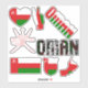 Amazing Oman Shapes National Symbols Sticker. Two country name stickers, one in the colours of the national flag and the other one covered in the Word Cloud with the words "Oman" written in the different alphabet forms and/or languages and fonts. All words are coloured with the national colours used on the flag of Oman, Beautiful heart, shield (escutcheon) and map filled with the representation of the Oman national flag. Hand sticker with the two fingers up, representing victory filled with the colours of the Oman national flag. The last two stickers are national flag of the Oman and the national Coat of Arms. This is the great set of superb stickers with most of them unique and hand drawn. All stickers are fully customisable using "Customise it!" feature. You can mix and match them as you wish. If you want multiple hearts but no shield fire away. Maybe you want only hand with the victory sign? Easy, remove everything else and make multiple copies of the hand. These grand stickers are the perfect sticky gift for any occasion. Fire away and stick them where your heart desire! © 2022 CountriesOfTheWorld