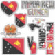 Amazing Papua New Guinea Shapes National Symbols Sticker. Two country name stickers, one in the colours of the national flag and the other one covered in the Word Cloud with the words "Papua New Guinea" written in the different alphabet forms and/or languages and fonts. All words are coloured with the national colours used on the flag of Papua New Guinea, Beautiful heart, shield (escutcheon) and map filled with the representation of the Papua New Guinea national flag. Hand sticker with the two fingers up, representing victory filled with the colours of the Papua New Guinea national flag. The last two stickers are national flag of the Papua New Guinea and the national Coat of Arms. This is the great set of superb stickers with most of them unique and hand drawn. All stickers are fully customisable using "Customise it!" feature. You can mix and match them as you wish. If you want multiple hearts but no shield fire away. Maybe you want only hand with the victory sign? Easy, remove everything else and make multiple copies of the hand. These grand stickers are the perfect sticky gift for any occasion. Fire away and stick them where your heart desire! © 2022 CountriesOfTheWorld