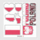 Amazing Poland Shapes National Symbols Sticker. Two country name stickers, one in the colours of the national flag and the other one covered in the Word Cloud with the words "Poland" written in the different alphabet forms and/or languages and fonts. All words are coloured with the national colours used on the flag of Poland, Beautiful heart, shield (escutcheon) and map filled with the representation of the Poland national flag. Hand sticker with the two fingers up, representing victory filled with the colours of the Poland national flag. The last two stickers are national flag of the Poland and the national Coat of Arms. This is the great set of superb stickers with most of them unique and hand drawn. All stickers are fully customisable using "Customise it!" feature. You can mix and match them as you wish. If you want multiple hearts but no shield fire away. Maybe you want only hand with the victory sign? Easy, remove everything else and make multiple copies of the hand. These grand stickers are the perfect sticky gift for any occasion. Fire away and stick them where your heart desire! © 2022 CountriesOfTheWorld