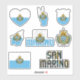 Amazing San Marino Shapes National Symbols Sticker. Two country name stickers, one in the colours of the national flag and the other one covered in the Word Cloud with the words "San Marino" written in the different alphabet forms and/or languages and fonts. All words are coloured with the national colours used on the flag of San Marino, Beautiful heart, shield (escutcheon) and map filled with the representation of the San Marino national flag. Hand sticker with the two fingers up, representing victory filled with the colours of the San Marino national flag. The last two stickers are national flag of the San Marino and the national Coat of Arms. This is the great set of superb stickers with most of them unique and hand drawn. All stickers are fully customisable using "Customise it!" feature. You can mix and match them as you wish. If you want multiple hearts but no shield fire away. Maybe you want only hand with the victory sign? Easy, remove everything else and make multiple copies of the hand. These grand stickers are the perfect sticky gift for any occasion. Fire away and stick them where your heart desire! © 2023 CountriesOfTheWorld