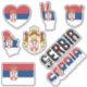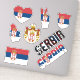 Amazing Serbia Shapes National Symbols Sticker. Two country name stickers, one in the colours of the national flag and the other one covered in the Word Cloud with the words "Serbia" written in the different alphabet forms and/or languages and fonts. All words are coloured with the national colours used on the flag of Serbia, Beautiful heart, shield (escutcheon) and map filled with the representation of the Serbia national flag. Hand sticker with the two fingers up, representing victory filled with the colours of the Serbia national flag. The last two stickers are national flag of the Serbia and the national Coat of Arms. This is the great set of superb stickers with most of them unique and hand drawn. All stickers are fully customisable using "Customise it!" feature. You can mix and match them as you wish. If you want multiple hearts but no shield fire away. Maybe you want only hand with the victory sign? Easy, remove everything else and make multiple copies of the hand. These grand stickers are the perfect sticky gift for any occasion. Fire away and stick them where your heart desire! © 2022 CountriesOfTheWorld