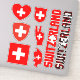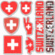 Amazing Switzerland Shapes National Symbols Sticker. Two country name stickers, one in the colours of the national flag and the other one covered in the Word Cloud with the words "Switzerland" written in the different alphabet forms and/or languages and fonts. All words are coloured with the national colours used on the flag of Switzerland, Beautiful heart, shield (escutcheon) and map filled with the representation of the Switzerland national flag. Hand sticker with the two fingers up, representing victory filled with the colours of the Switzerland national flag. The last two stickers are national flag of the Switzerland and the national Coat of Arms. This is the great set of superb stickers with most of them unique and hand drawn. All stickers are fully customisable using "Customise it!" feature. You can mix and match them as you wish. If you want multiple hearts but no shield fire away. Maybe you want only hand with the victory sign? Easy, remove everything else and make multiple copies of the hand. These grand stickers are the perfect sticky gift for any occasion. Fire away and stick them where your heart desire! © 2022 CountriesOfTheWorld