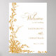 This wedding welcome sign (poster) features an arched trellis adorned with florals, botanical foliage, and a small bird. For more advanced customization of this design, please click the BLUE DESIGN TOOL BUTTON above! Matching items are also available.