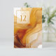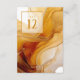 The striking table number card shown here provides a template to easily add your table number, initials and wedding date. As part of a complete wedding collection, with a rich colour palette in shades reminiscent of liquid maple syrup or fine brandy, it exudes warmth and sophistication. Perfect for couples seeking an artistic, modern touch, this collection blends a fluid abstract with timeless elegance, setting the stage for a truly unforgettable celebration. Search ID1089 to see other pieces in this coordinated wedding set.