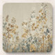 This coaster features an ethereal, meadow-inspired landscape rendered in a delicate watercolor style. Stems of wildflowers and clover-like foliage stretch upward against a warm linen-textured background, creating a tactile, fabric-like appearance.