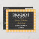 Cute Engagement Party invitation with cool Amber Orange Gingham pattern and dark grey modern chevron background.