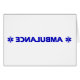 Ambulance (backward, just like on the front of the real thing) flanked by the Star of Life