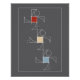 Ambulate is an abstract design that will kick your modern decor to a new level. Three stylised figures with red, tan and blue squares step activley in tandem across a trendy charcoal backgound.