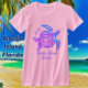 Amelia Island, Florida sea turtle t-shirt. The colourful sea turtle is bright shades of pink, purple and blue. The turtle design resembles a hand- carved stamp. "Amelia Island Florida" is below the turtle in a pretty script font. There is also a template for initials. You can easily remove the template, if you wish.