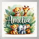 Beautiful nursery decor featuring charming baby safari animals and tropical leaves with the name Amelia prominently displayed. Creates a warm, adventurous atmosphere perfect for any child's room. High-quality print ready for framing. Custom names available - message me for details!