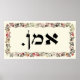 A simple framing of the word "Amen," which is a Hebrew form of the root word "emunah," meaning "dependable," or "trustworthy." The background is a photographic representation of rag paper embedded with gold and silver flakes with a cut paper edge.