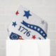 Commemorate the 250th anniversary of the United States with this patriotic tissue paper. Ideal for crafting projects or gift wrapping, this design incorporates the Liberty Bell, the American flag, and red and blue stars in an all-over print. It is an excellent way to showcase American pride at any event.