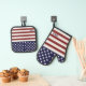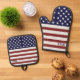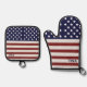 America Flag American USA Pattern Oven Mitt & Pot Holder Set