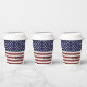 America Flag American USA Pattern Paper Cups, blue, red & white fireworks & American flag display set on a blue background to celebrate Independence Day. Happy 4th of July, Flip the back of our summer patriotic holiday invite over to view a matching back. Stylish Paper Cups for a memorial day barbecue, 4th of July cookout, labour day party, or any patriot-themed party. America Flag with Red, Red, and white stripes and white stars on a navy blue background. The stars represent the States in America. Ideal for Clothing, home decor, accessories, and gifts. Show your USA patriotism on the 4th of July or Memorial Day or at any sports event. sports event. #fleeceblanket #American #usa #patriotic #sportsfans