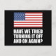 Have We Tried Turning It Off And On Again? This funny American political humour accessory is great for anyone who follows news and current events, and is concerned about the polarisation of America's divided politics. Great gift for anyone who appreciates political satire and sarcastic quotes. America doesn't seem to be working right now, maybe we need to treat it like an IT computer problem and turn it off & back on again? Features typographic text & an American flag.