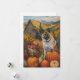 Celebrate the beauty of fall with this vibrant painting of a dog sitting beside a bountiful Thanksgiving harvest. The rich autumn colours of pumpkins, sunflowers, and rustic farmhouse scenery create a warm and inviting atmosphere, perfect for any dog lover's seasonal décor.