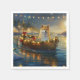 Set sail into the magic of the holiday season with this beautifully detailed illustration, showcasing a proud dog sitting in a festively decorated boat, gliding across a serene Christmas lake. The twinkling lights from nearby pine trees reflect off the water, casting a warm, festive glow that enhances the cosy ambiance. Ornaments dangle from the boat's sides, while glowing lanterns light the way, creating a scene that captures the true essence of Christmas warmth and joy. This nostalgic artwork brings a touch of holiday magic to any space, perfect for those who cherish the spirit of the season.