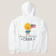 A cute yellow chick wears an I Heart USA t-shirt while wearing the American flag on American and Proud Chick t-shirts, buttons, mugs and more apparel and patriotic gear for her.