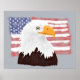 American Bald Eagle and Flag - transparent on grey Poster