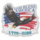 The American Bald Eagle, a symbol of strength and freedom, is depicted with majestic wings outstretched, proudly surrounded by a display of vibrant patriotic flag colors. Above the eagle, the text "God Bless America" and under the wings "1776 - 2026". In the eagles talons the numbers 250 and the American flag in background. This striking image captures the spirit of America, uniting the noble bird with the enduring symbolism of the United States.