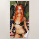 Hot redhead girl in camouflage bikini with american flag.