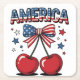 American Coquette Bow Cherry Aesthetic USA Flag Square Paper Coaster