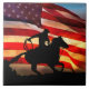 A beautiful and colourful way to display your American colours! This art tile features an cowboy riding his horse with an American Flag in the background.
