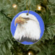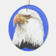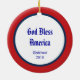 Patriotic Christmas ornament has an eagle against a blue background on the front. The red, white, and blue back reafs "God Bless America" and :"Christmas 2010," both of which can be changed if desired.