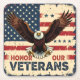 The bold text at the base reads "HONOR OUR VETERANS," making these coasters a meaningful tribute for any home or commemorative gathering. Each coaster is finished with a protective surface that preserves the deep reds, blues, and intricate feather details, ensuring the design remains sharp even with frequent use.