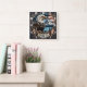 American Eagle With Mountains and Flag Background Square Wall Clock