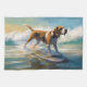 American Engligh Foxhound Beach Surfing Painting Tea Towel