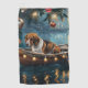 Set sail into the magic of the holiday season with this beautifully detailed illustration, showcasing a proud dog sitting in a festively decorated boat, gliding across a serene Christmas lake. The twinkling lights from nearby pine trees reflect off the water, casting a warm, festive glow that enhances the cosy ambiance. Ornaments dangle from the boat's sides, while glowing lanterns light the way, creating a scene that captures the true essence of Christmas warmth and joy. This nostalgic artwork brings a touch of holiday magic to any space, perfect for those who cherish the spirit of the season.