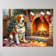 This festive Christmas illustration features an energetic American English Foxhound sitting beside a warm, glowing fireplace, wrapped in twinkling Christmas lights with stockings hanging above. The breed’s alert expression and sleek, athletic build add charm and personality to this cozy holiday scene. Perfect for American English Foxhound lovers, holiday décor fans, and Zazzle shoppers looking for unique Christmas artwork featuring their favorite hound breed.