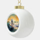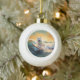 American Eskimo Beach Surfing Painting Ceramic Ball Christmas Ornament