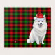 American Eskimo Christmas Dog with Holiday Plaid