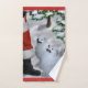 Beautiful American Eskimo Dog Christmas art towel set to add a touch of the holidays to your bathroom decor.
