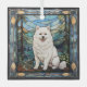 Ornament featuring an American Eskimo Dog done in a stained glass window mode.
