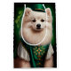In this design, the American Eskimo is depicted wearing a green top hat and a shamrock collar, which are classic symbols of St. Patrick's Day. The hat features a buckle and a shamrock, adding a touch of festive Irish charm to the design, while the collar highlights the dog's playful and friendly nature.
