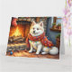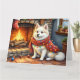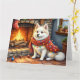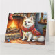 This cozy holiday illustration showcases a fluffy American Eskimo Dog sitting beside a warm fireplace, wrapped in glowing Christmas lights with festive stockings hanging above. The breed’s bright eyes and snowy white coat add winter magic to the scene, making it perfect for American Eskimo lovers and anyone searching for charming seasonal décor on Zazzle. A wonderful Christmas gift idea featuring this beloved spitz breed in a heartwarming holiday setting.
