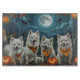 Unleash the spooky spirit with this eerie Halloween design featuring a pack of dogs under a dark, moonlit sky, surrounded by flying bats and glowing pumpkins. Perfect for those who love a touch of frightful fun with their furry friends!