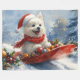 American Eskimo in Sledge Let it Snow Christmas Fleece Blanket
