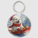 American Eskimo in Sledge Let it Snow Christmas Key Ring