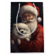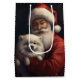 American Eskimo with Santa Claus Festive Christmas Medium Gift Bag