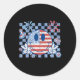 American Flag 4th Of July Groovy Smiling Face Chec Classic Round Sticker