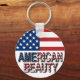 This fun and fashionable patriotic American Flag key ring is just the thing for proud beautiful Americans! This American design is available on other products and features the Stars and Stripes, flag of the United States and the slogan: American Beauty also in the colours of the American flag. This stylish key ring makes a super accessory for your keys and makes a great gift too! More fun gifts available in the Stand Up and Cheer Store.